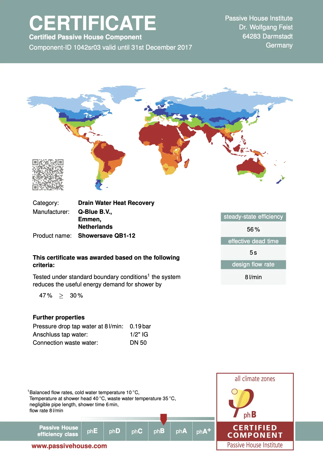 Le ReQup®-Plus QB1 est un récupérateur de chaleur des eaux usées, totalement passif et instantané. Il exploite la chaleur des eaux évacuées de la douche, lavabo…) pour préchauffer l’eau froide desservant le mitigeur thermostatique, permettant de réduire le besoin en eau chaude de 35% et entrant dans le préparateur d’eau chaude chauffe-eau, réduisant ainsi l’énergie nécessaire pour atteindre une température confortable.